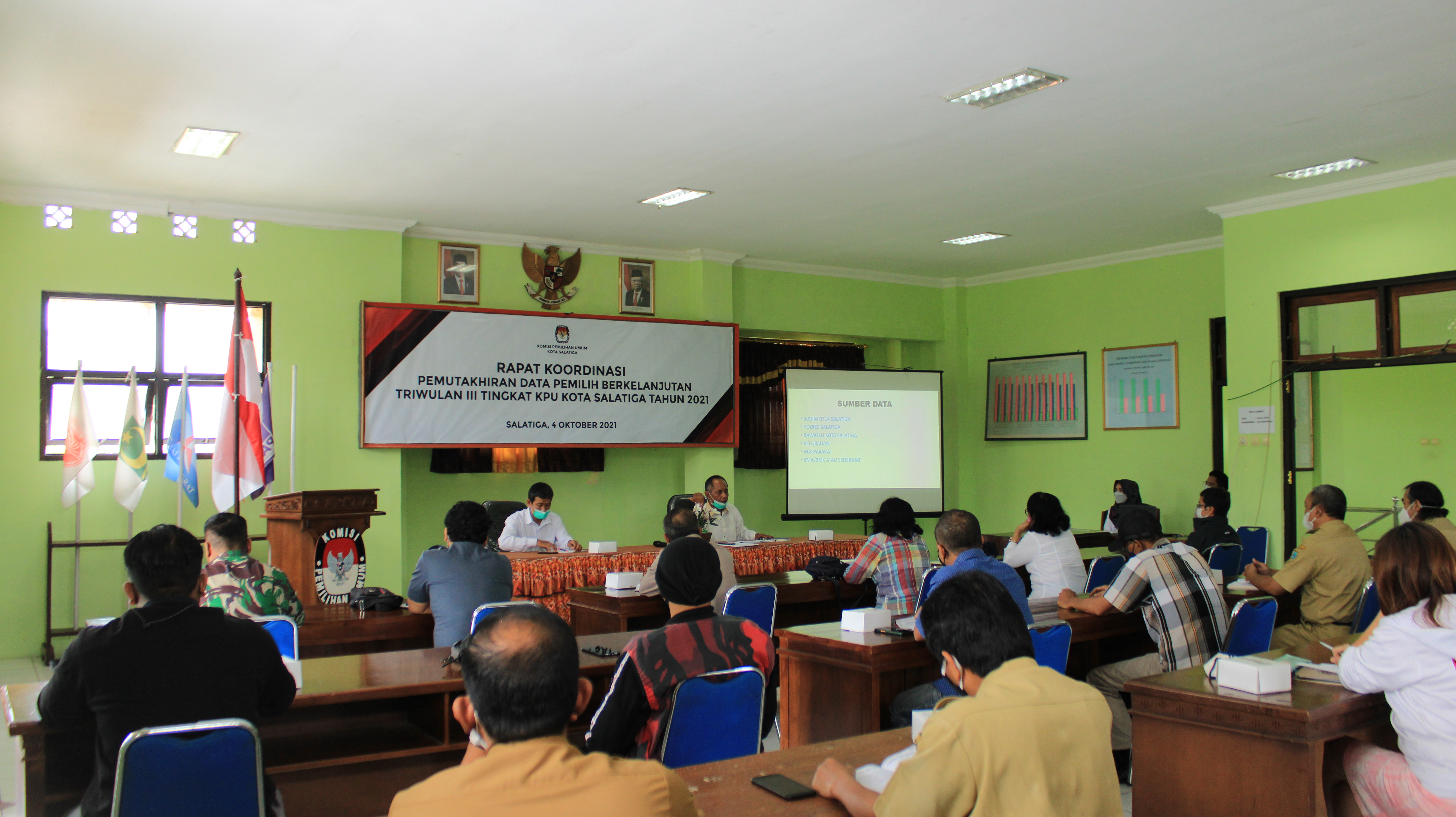 Rapat dipimpin langsung oleh ketua KPU Kota Salatiga, Syaemuri. Rekapitulasi DPB bulan September 2021 di angka 132.409 (seratus tiga puluh dua ribu empat ratus rupiah) pemilih yang terdiri dari pemilih laki-laki sebanyak 63.925 (enam puluh tiga ribu sembilan ratus dua puluh lima) dan pemilih perempuan sebanyak 68.484 (enak puluh delapan ribu empat ratus delapan puluh empat) pemilih yang tersebar di 4 kecamatan yang ada di Kota Salatiga yakni Kecamatan Argomulyo, Kecamatan Tingkir, Kecamatan Sidorejo dan Kecamatan Sidomukti.